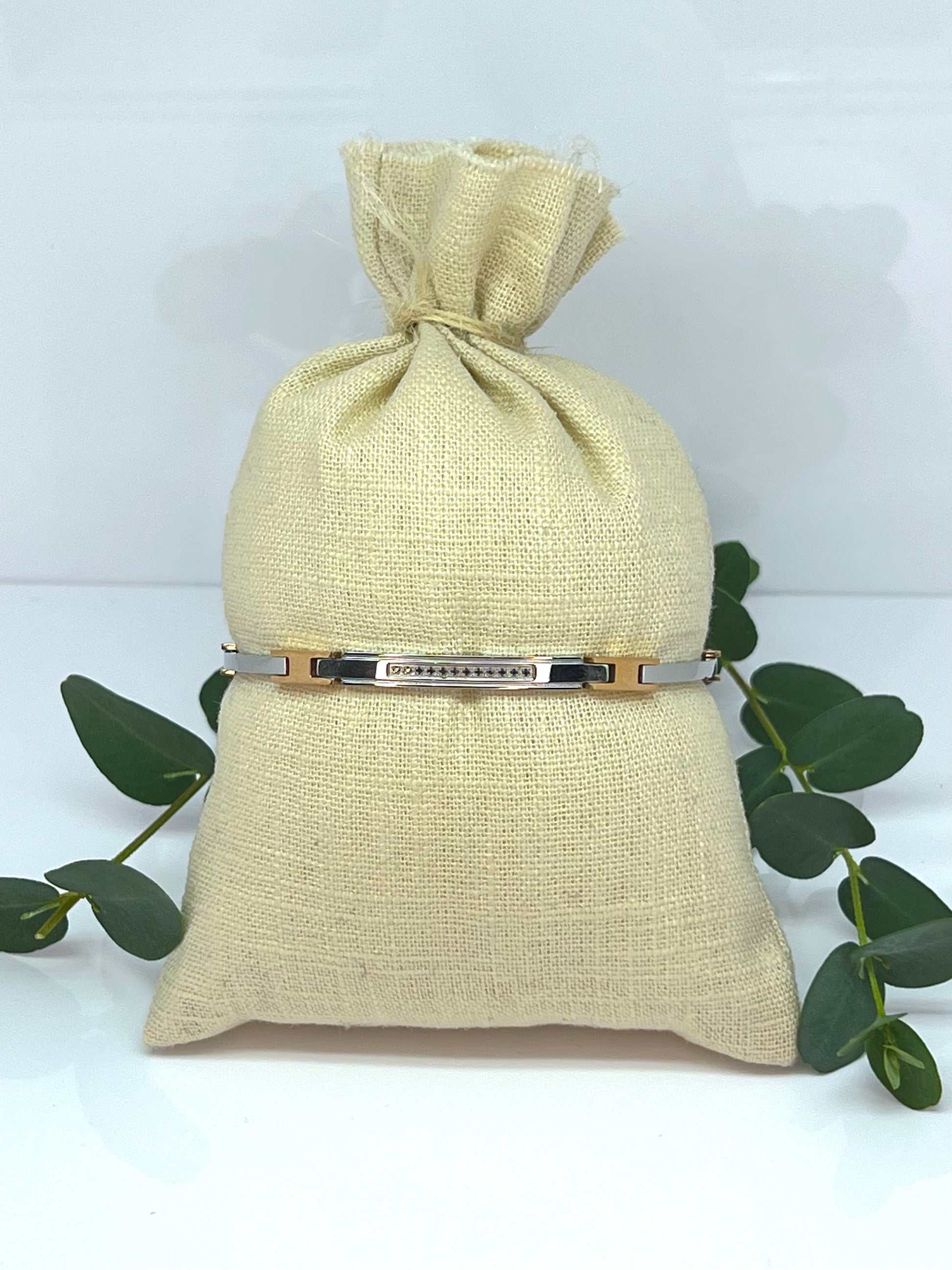Bracciale in acciaio (nickel free) con ip rosa e ct. 0,08 di diamanti neri.